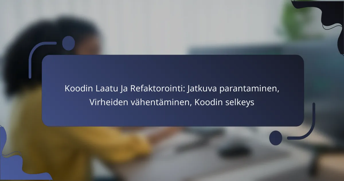 Koodin tarkastuksissa tehokkuuden parantaminen voi tapahtua useilla eri tavoilla, kuten prosessien optimoinnilla, työkalujen hyödyntämisellä ja tiimityön kehittämisellä. Tavoitteena on vähentää tarkastusaikaa ja parantaa koodin laatua, mikä edellyttää jatkuvaa oppimista ja palautteen hyödyntämistä.