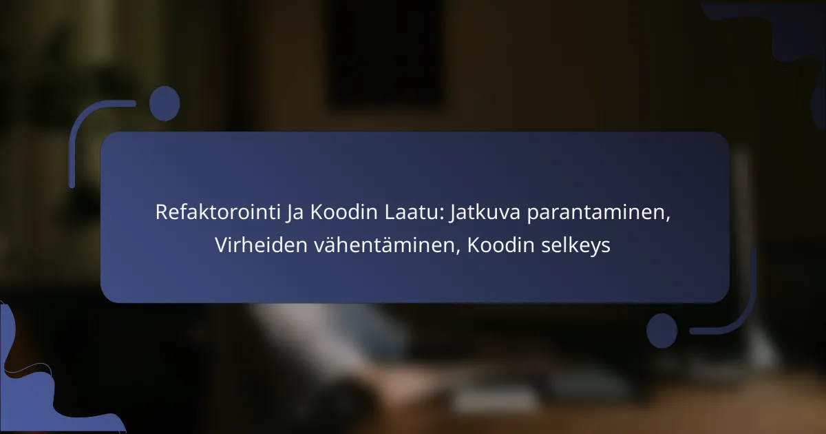 Refaktorointi on prosessi, jossa koodin rakennetta parannetaan ilman, että sen toiminnallisuus muuttuu. Parhaat käytännöt refaktoroinnissa keskittyvät koodin laadun parantamiseen, ylläpidettävyyteen ja tiimityöhön.